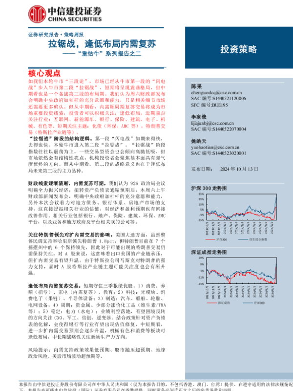 【中信建投证券】【20241013】“重估牛”系列报告之二:拉锯战,逢低布局内需复苏-13页