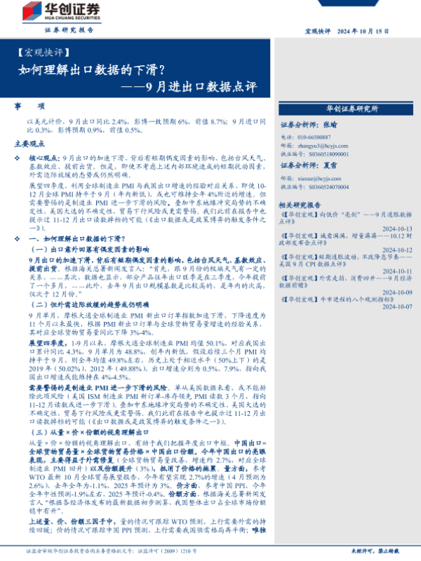 【华创证券】【20241015】【宏观快评】9月进出口数据点评:如何理解出口数据的下滑?-19页