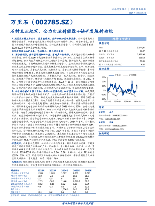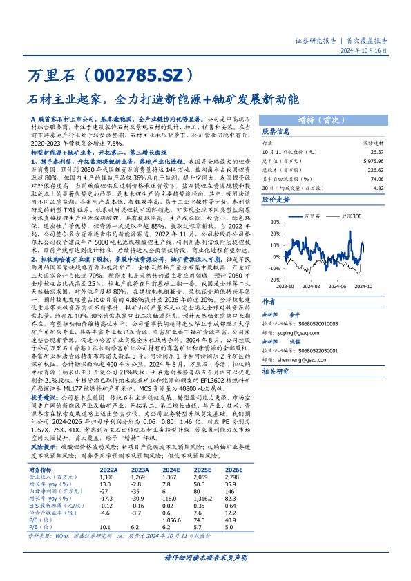 【国盛证券】【20241016】万里石(002785)石材主业起家,全力打造新能源+铀矿发展新动能-24页