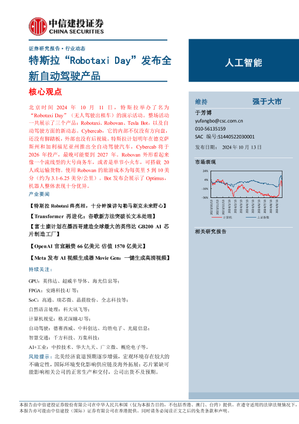 【中信建投证券】【20241013】人工智能行业:特斯拉“Robotaxi+Day”发布全新自动驾驶产品-10页