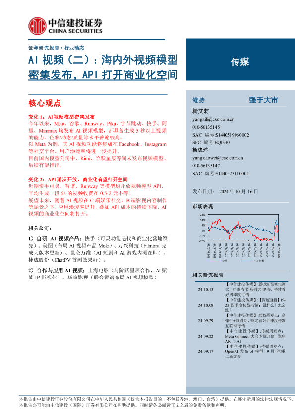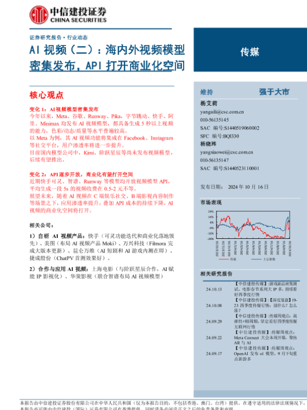 【中信建投证券】【20241016】传媒行业AI视频(二):海内外视频模型密集发布,API打开商业化空间-14页