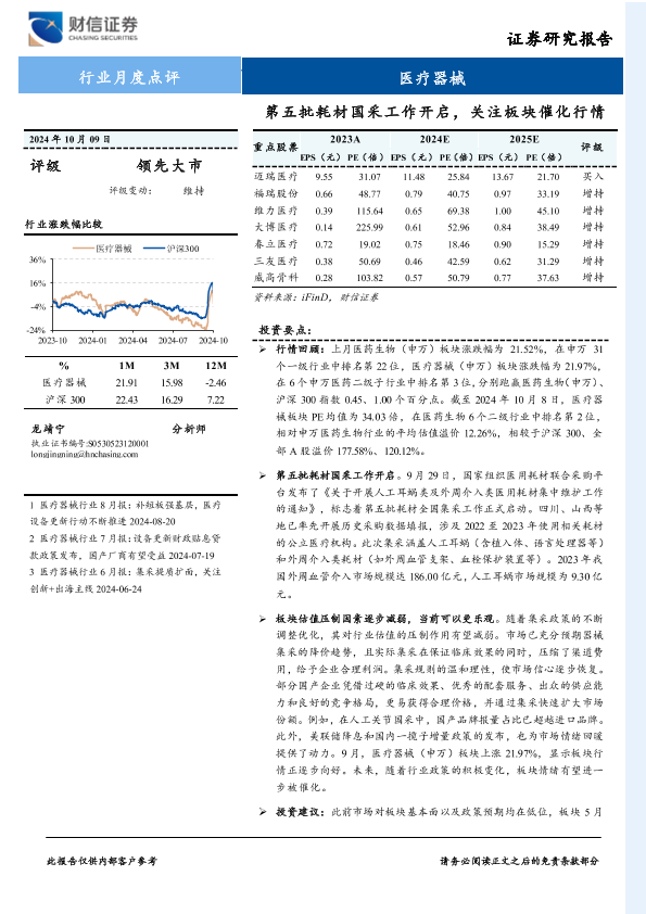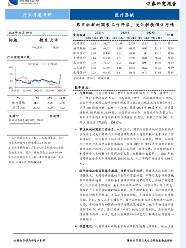 【财信证券】【20241009】医疗器械行业月度点评:第五批耗材国采工作开启,关注板块催化行情-12页