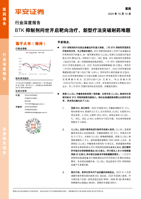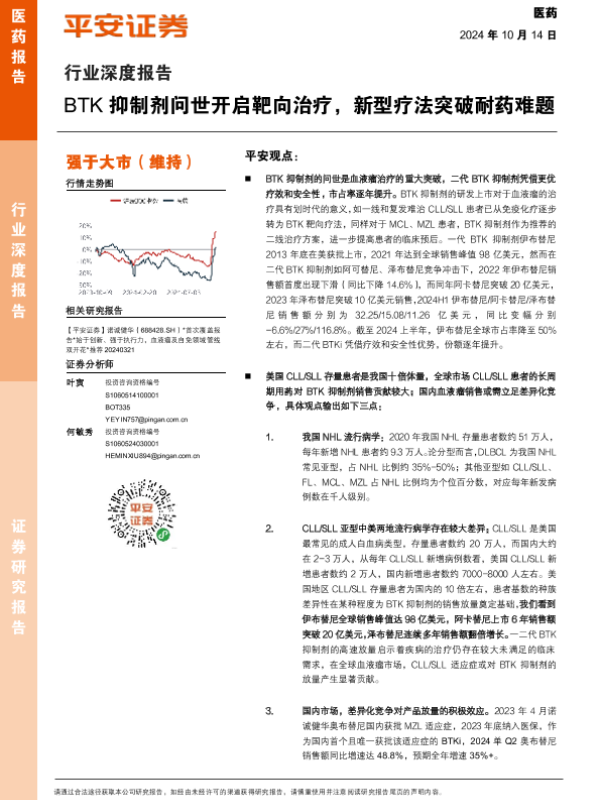 【平安证券】【20241014】医药行业深度报告:BTK抑制剂问世开启靶向治疗,新型疗法突破耐药难题-34页