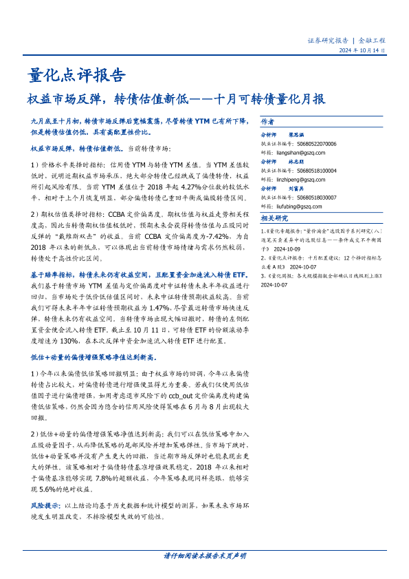 【国盛证券】【20241014】十月可转债量化月报:权益市场反弹,转债估值新低-20页