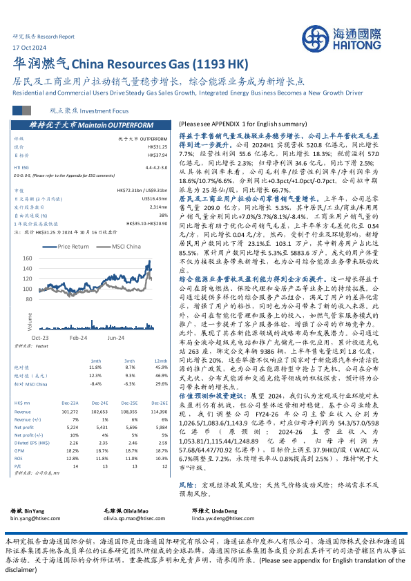 【海通国际】【20241017】华润燃气(01193.HK)居民及工商业用户拉动销气量稳步增长,综合能源业务成为新增长点-12页