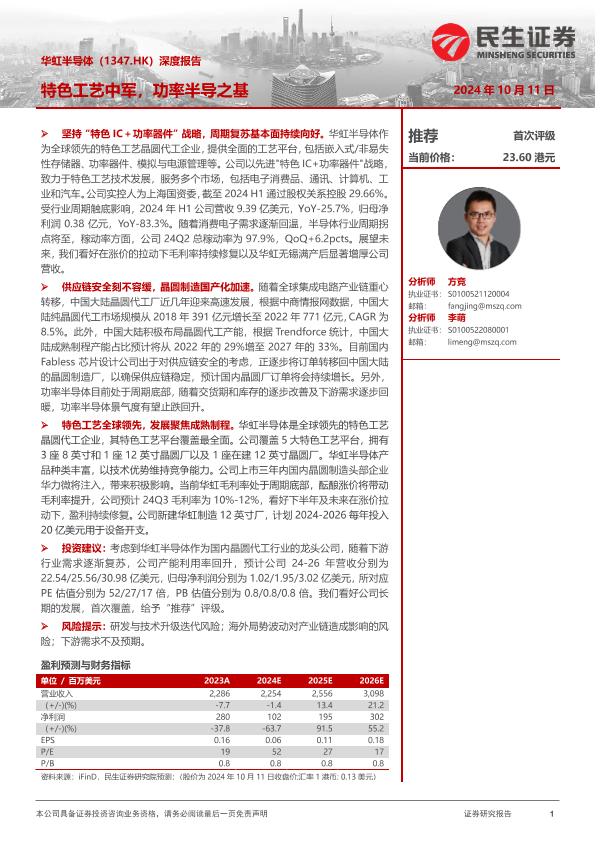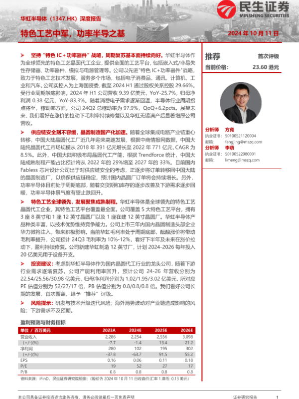 【民生证券】【20241011】华虹半导体(01347.HK)深度报告:特色工艺中军,功率半导之基-31页