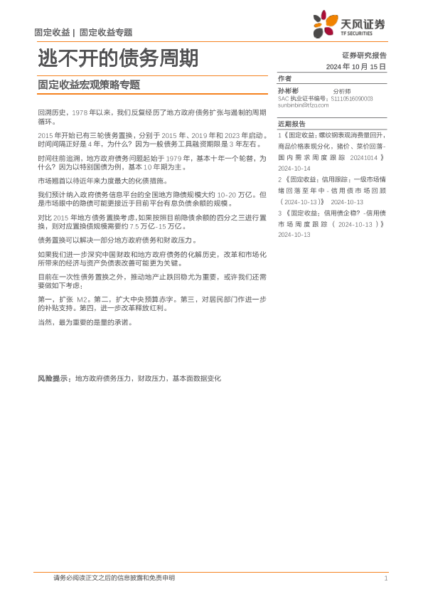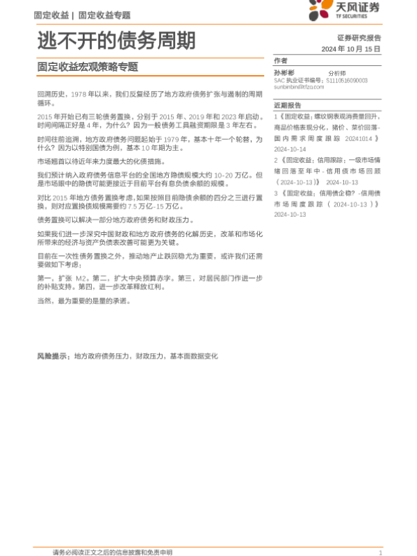 【天风证券】【20241015】固定收益宏观策略专题:逃不开的债务周期-11页
