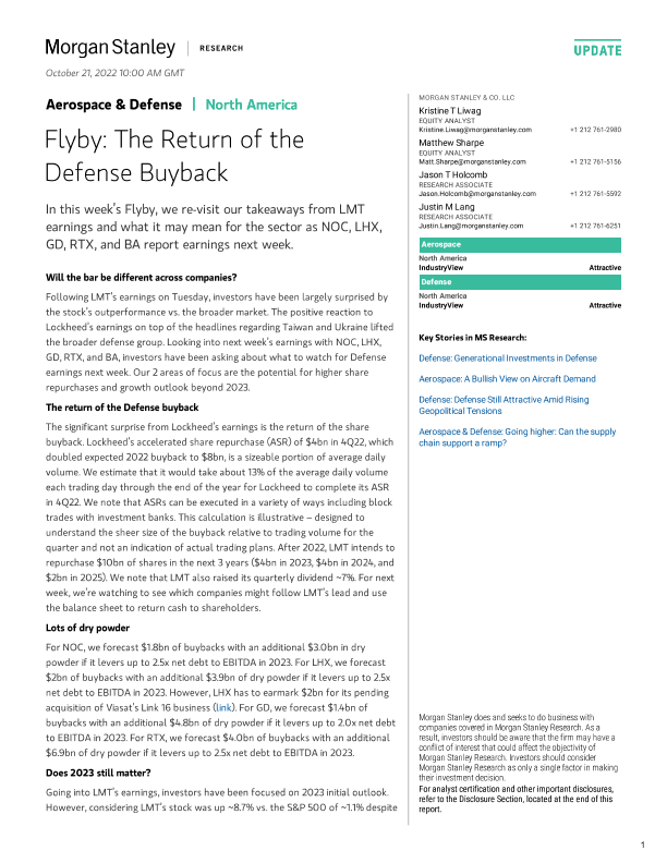 【Morgan Stanley】【20221021】Aerospace & Defense Flyby The Return of the Defense Buyback-18页