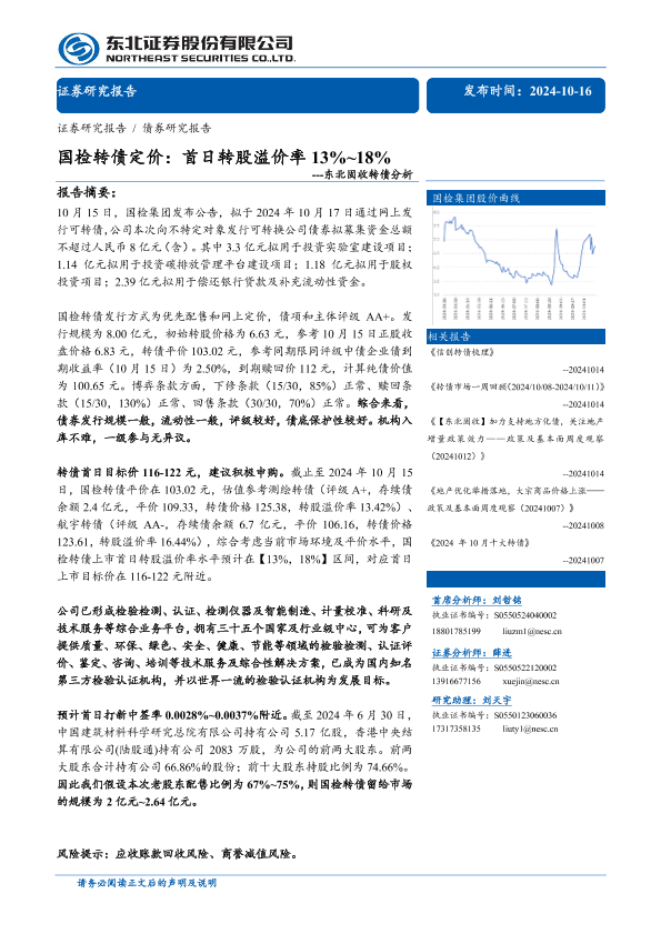【东北证券】【20241016】固收转债分析:国检转债定价,首日转股溢价率13%-18%-12页