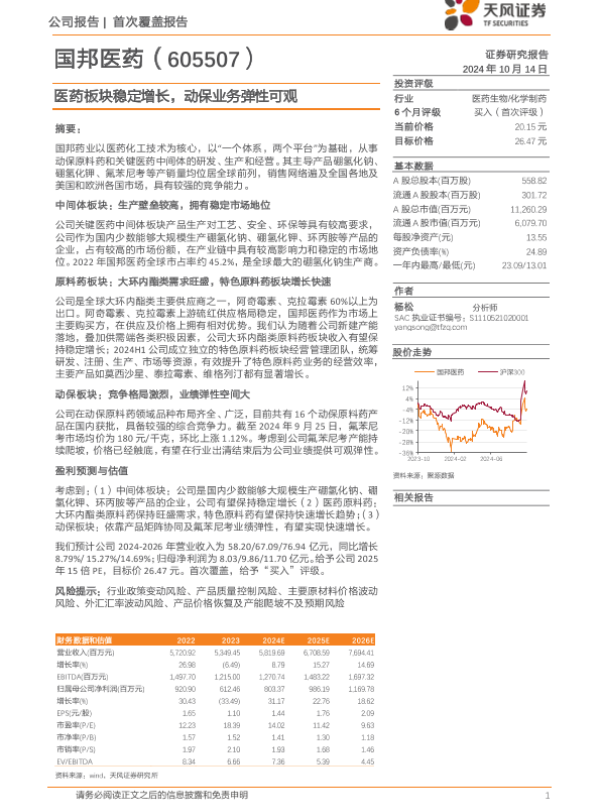 【天风证券】【20241014】国邦医药(605507)医药板块稳定增长,动保业务弹性可观-21页