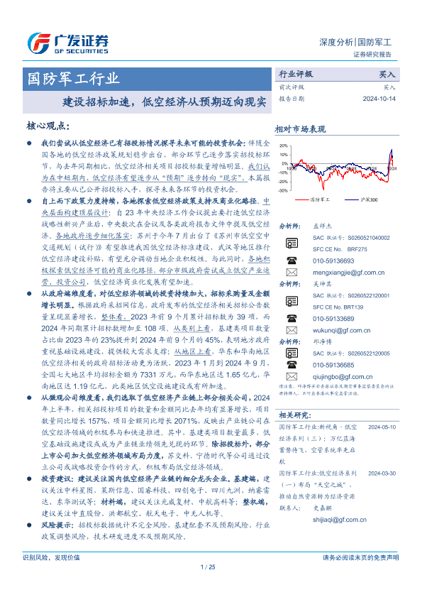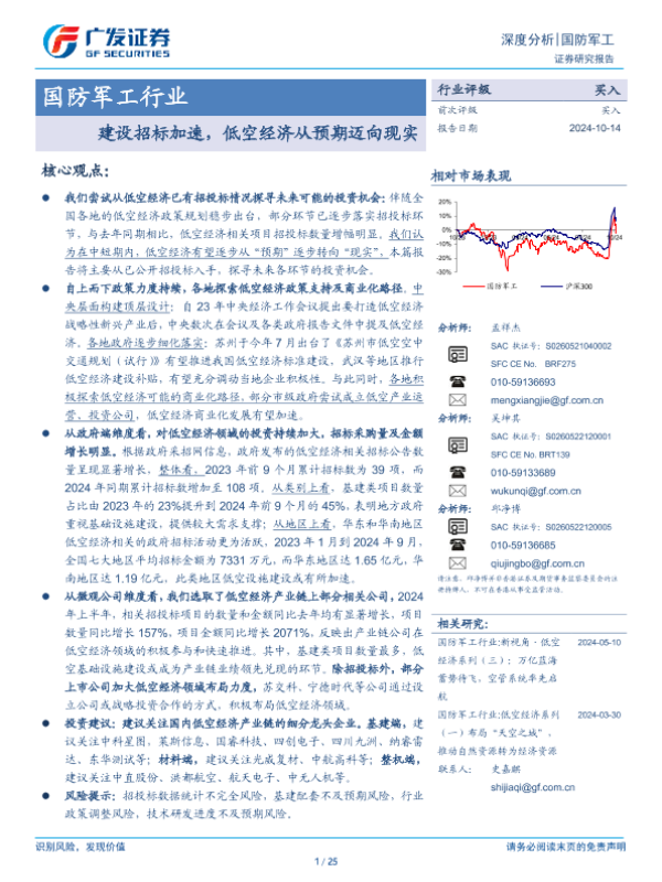 【广发证券】【20241014】国防军工行业:建设招标加速,低空经济从预期迈向现实-25页