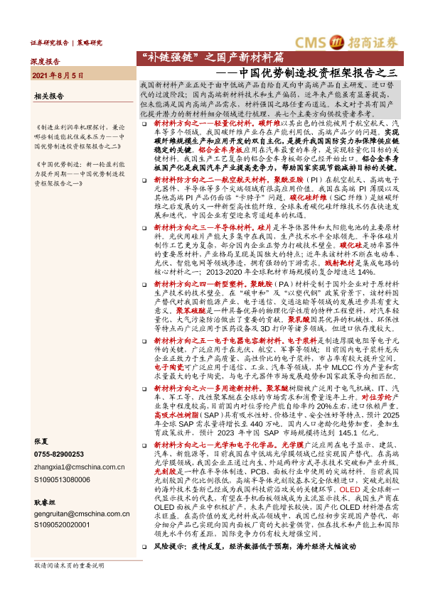 【海通证券】【20210805】中国优势制造投资框架报告之三:“补链强链”之国产新材料篇-161页