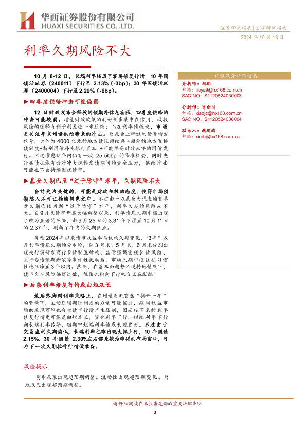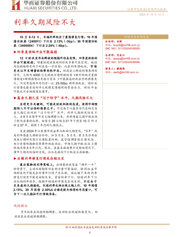 【华西证券】【20241013】宏观研究报告:利率久期风险不大-19页