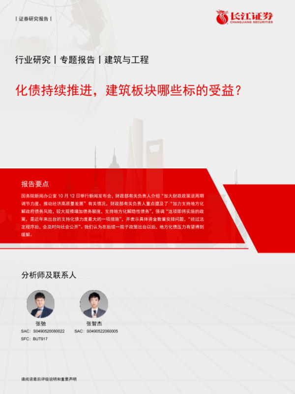 【长江证券】【20241015】建筑与工程行业:化债持续推进,建筑板块哪些标的受益?-13页