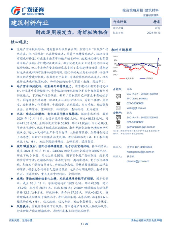 【广发证券】【20241013】建筑材料行业:财政逆周期发力,看好板块机会-26页