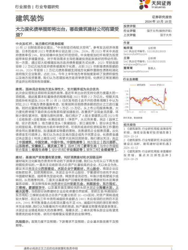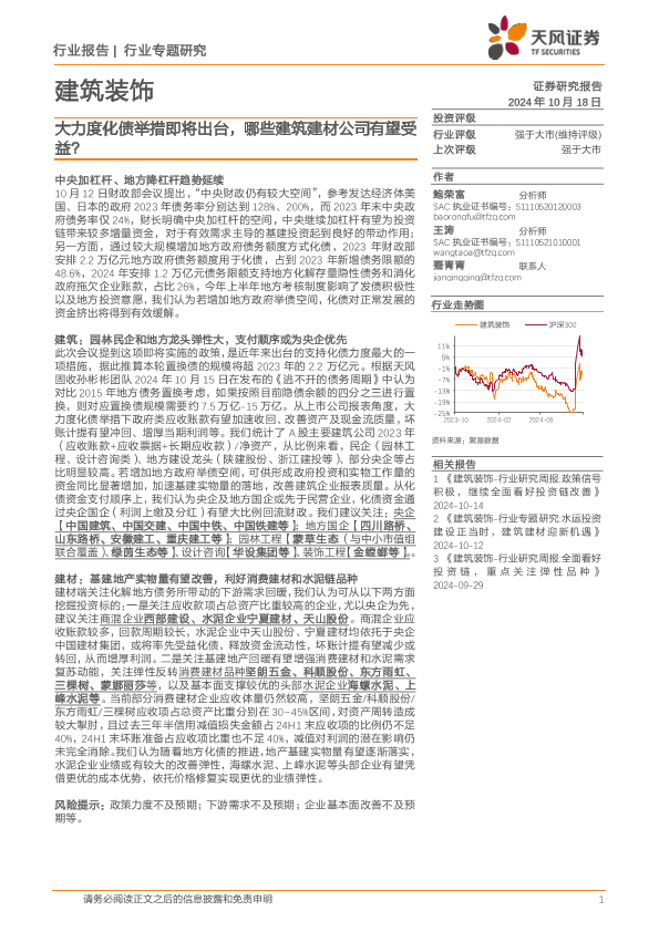 【天风证券】【20241018】建筑装饰行业专题研究:大力度化债举措即将出台,哪些建筑建材公司有望受益?-10页