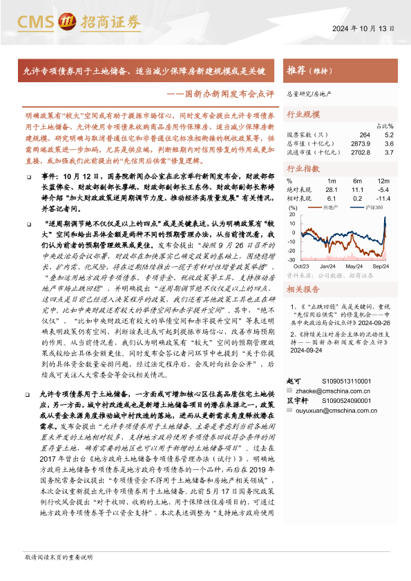 【海通证券】【20241013】房地产行业国新办新闻发布会点评:允许专项债券用于土地储备、适当减少保障房新建规模或是关键-15页