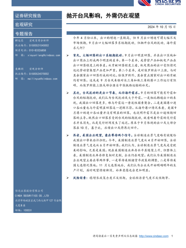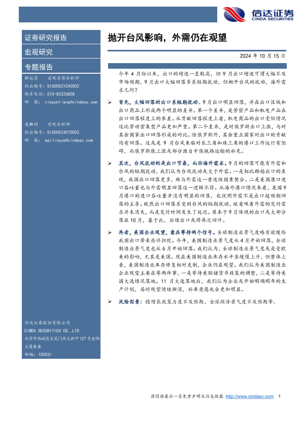 【信达证券】【20241015】抛开台风影响,外需仍在观望-10页