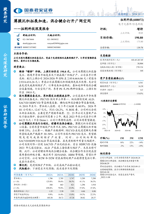 【国泰君安证券】【20241012】拓荆科技(688072)深度报告:薄膜沉积拓展加速,混合键合打开广阔空间-35页