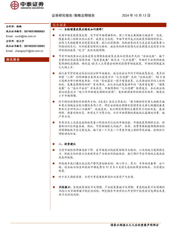 【中泰证券】【20241013】本轮增量政策后续或如何演绎?-10页