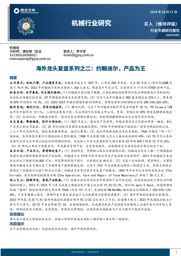 【国金证券】【20241017】机械行业海外龙头复盘系列之二:约翰迪尔,产品为王-30页