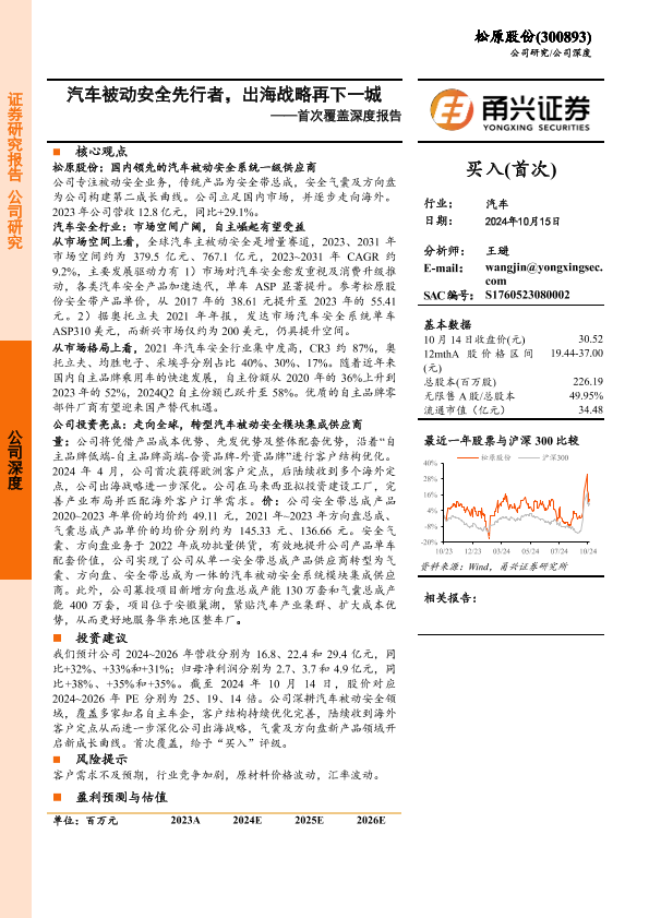 【甬兴证券】【20241015】松原股份(300893)首次覆盖深度报告:汽车被动安全先行者,出海战略再下一城-23页