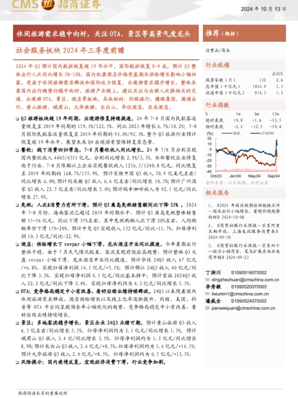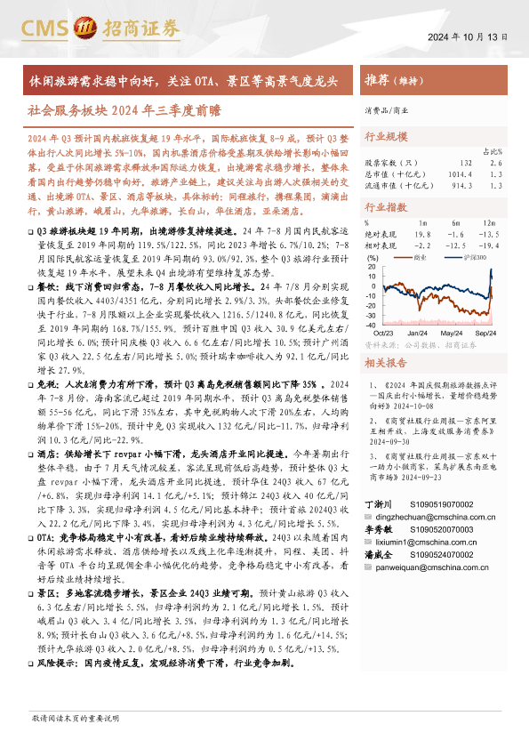 【海通证券】【20241013】消费品行业社会服务板块2024年三季度前瞻:休闲旅游需求稳中向好,关注OTA、景区等高景气度龙头-15页