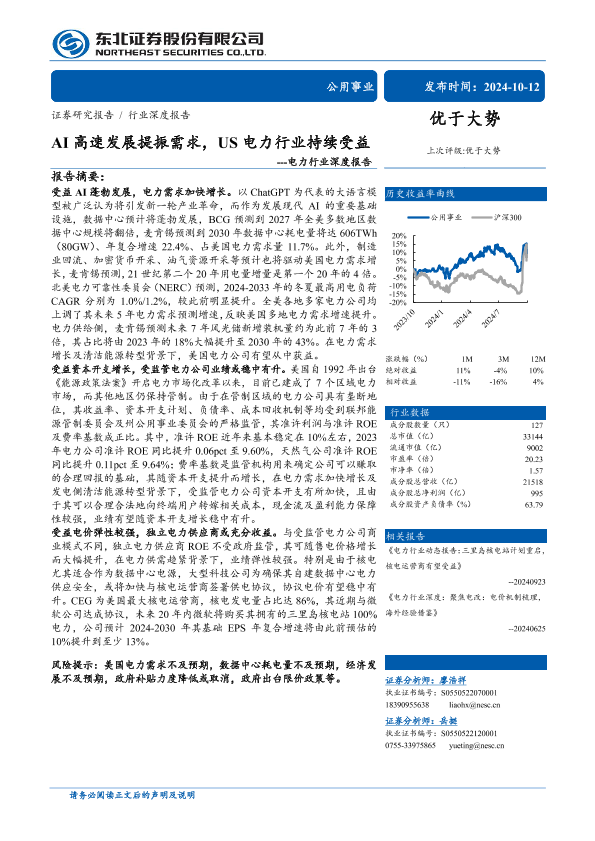 【东北证券】【20241012】电力行业深度报告:AI高速发展提振需求,US电力行业持续受益-36页
