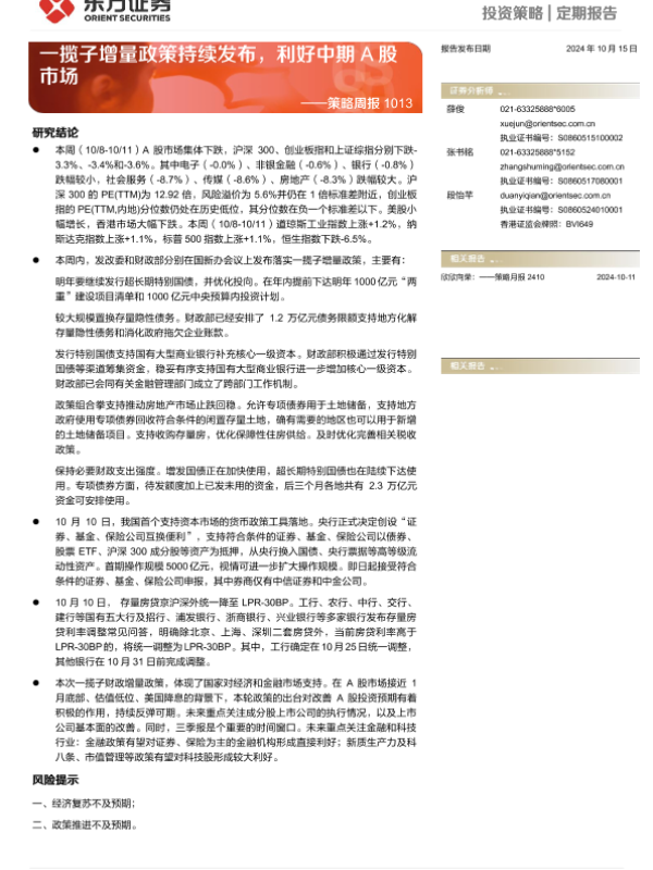 【东方证券】【20241015】策略周报:一揽子增量政策持续发布,利好中期A股市场-12页