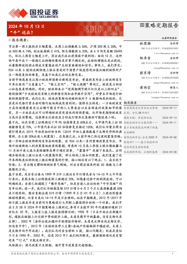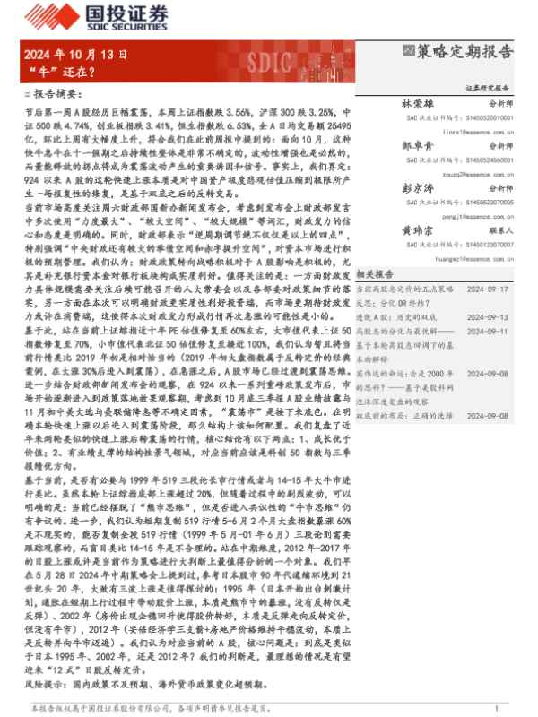 【国投证券】【20241013】策略定期报告:“牛”还在?-26页