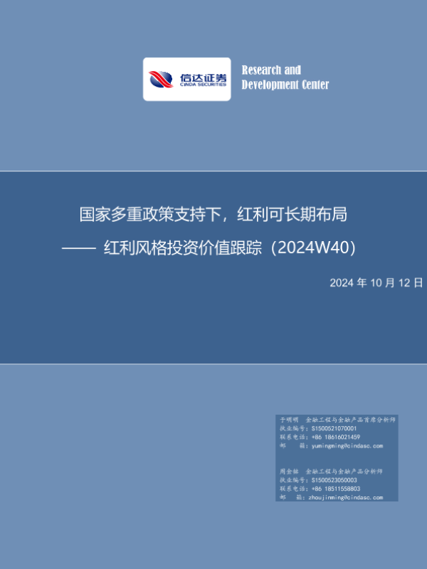 【信达证券】【20241012】红利风格投资价值跟踪(2024W40):国家多重政策支持下,红利可长期布局-13页