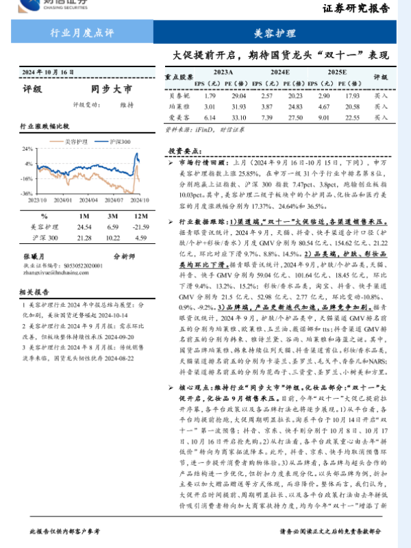 【财信证券】【20241016】美容护理行业月度点评:大促提前开启,期待国货龙头“双十一”表现-12页
