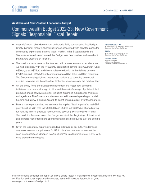 【Goldman Sachs】【20221026】wealth Budget 2022-23 New Government Signals 'Responsible' Fiscal Repair-11页