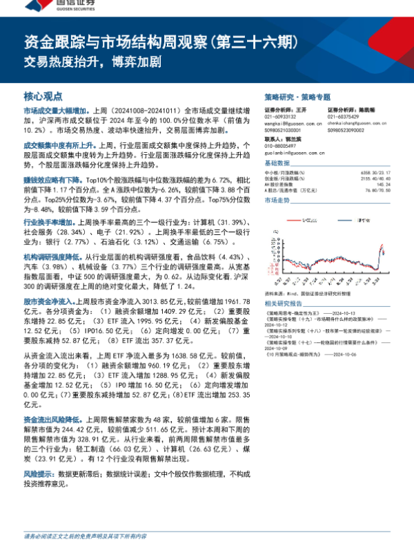 【国信证券】【20241015】资金跟踪与市场结构周观察(第三十六期):交易热度抬升,博弈加剧-25页