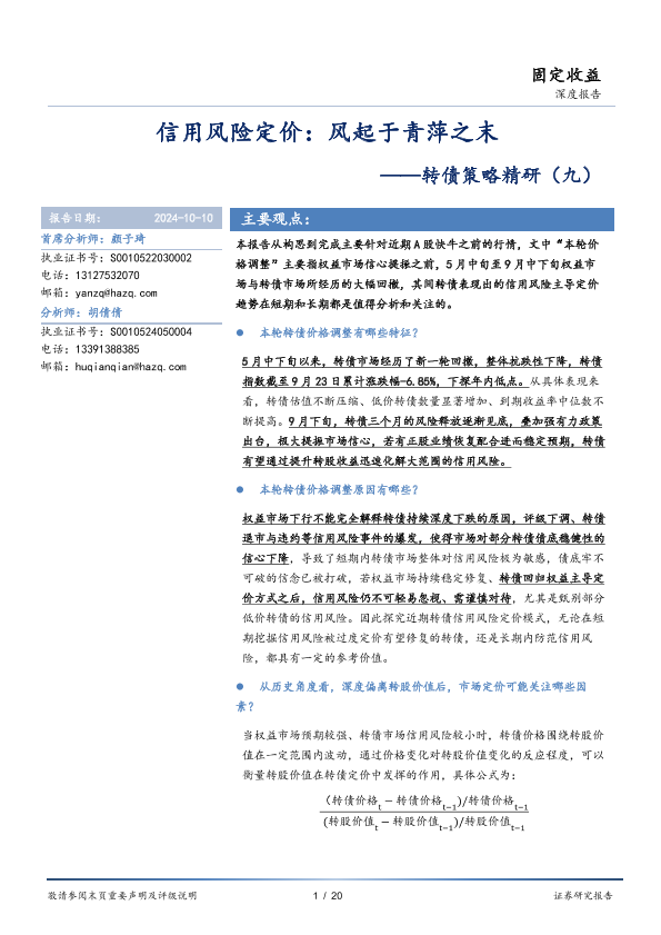 【华安证券】【20241010】转债策略精研(九):信用风险定价,风起于青萍之末-20页