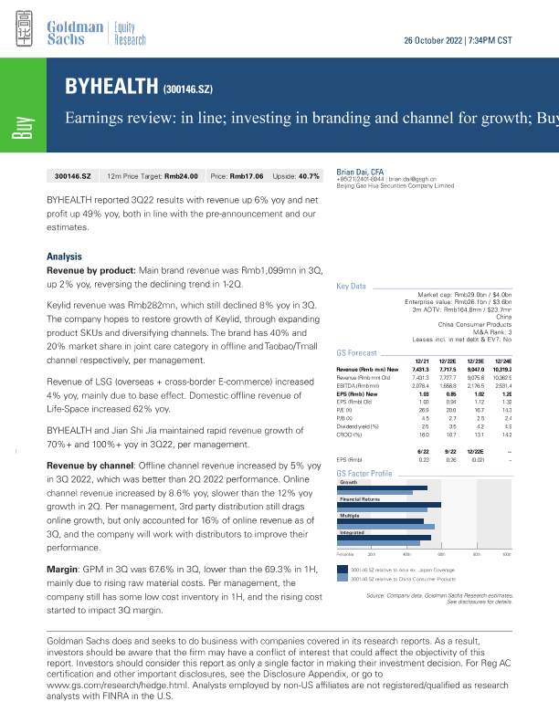 【Goldman Sachs】【20221026】earnings review_ in line; investing in branding and channel for growth; Buy-8页