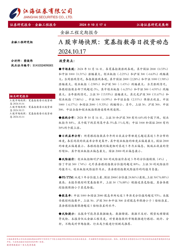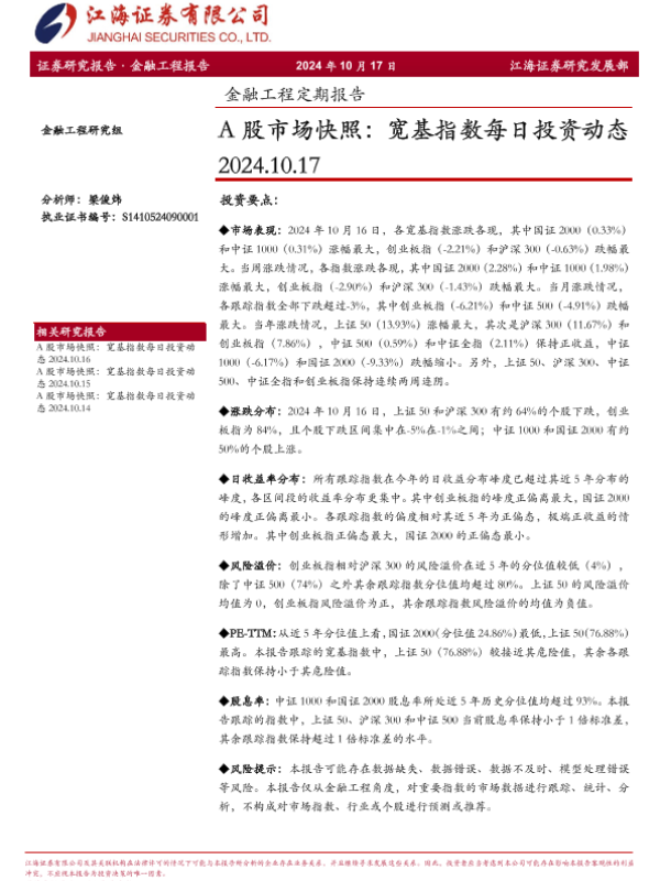 【江海证券】【20241017】金融工程定期报告:A股市场快照,宽基指数每日投资动态-11页