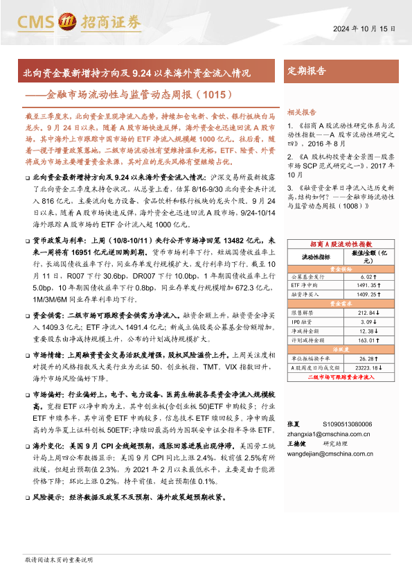 【海通证券】【20241015】金融市场流动性与监管动态周报:北向资金最新增持方向及9.24以来海外资金流入情况-18页