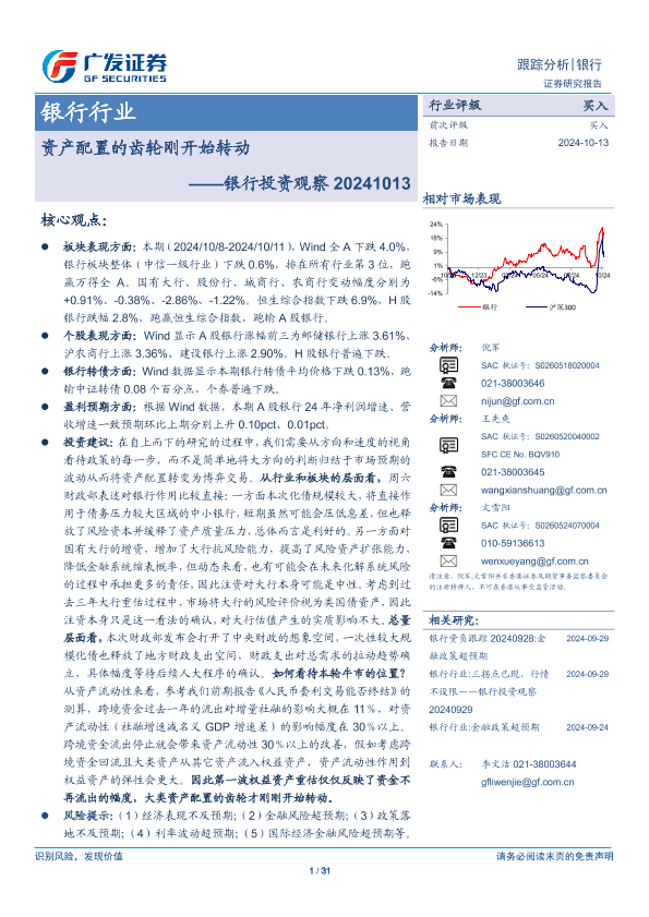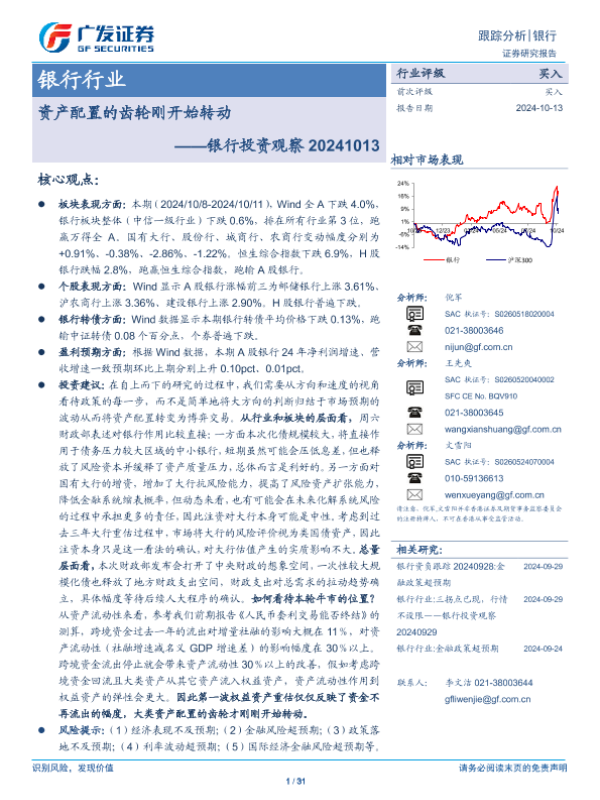 【广发证券】【20241013】银行业投资观察:资产配置的齿轮刚开始转动-31页