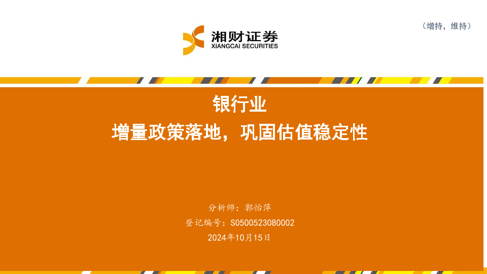 【湘财证券】【20241015】银行业:增量政策落地,巩固估值稳定性-27页