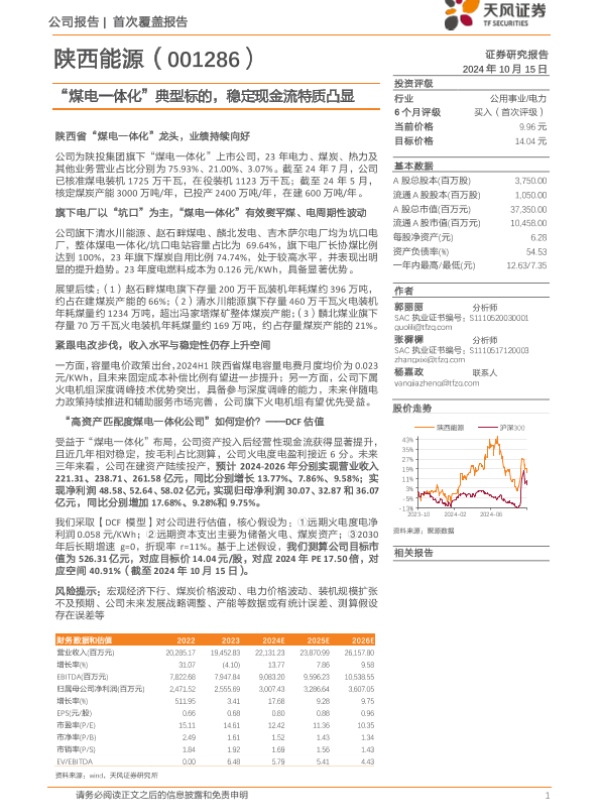 【天风证券】【20241015】陕西能源(001286)“煤电一体化”典型标的,稳定现金流特质凸显-18页