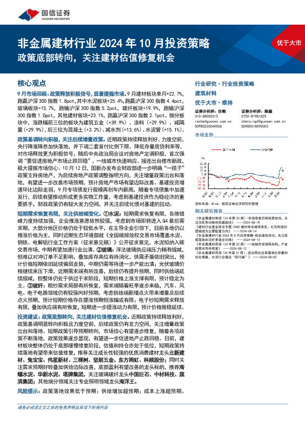 【国信证券】【20241017】非金属建材行业2024年10月投资策略:政策底部转向,关注建材估值修复机会-29页