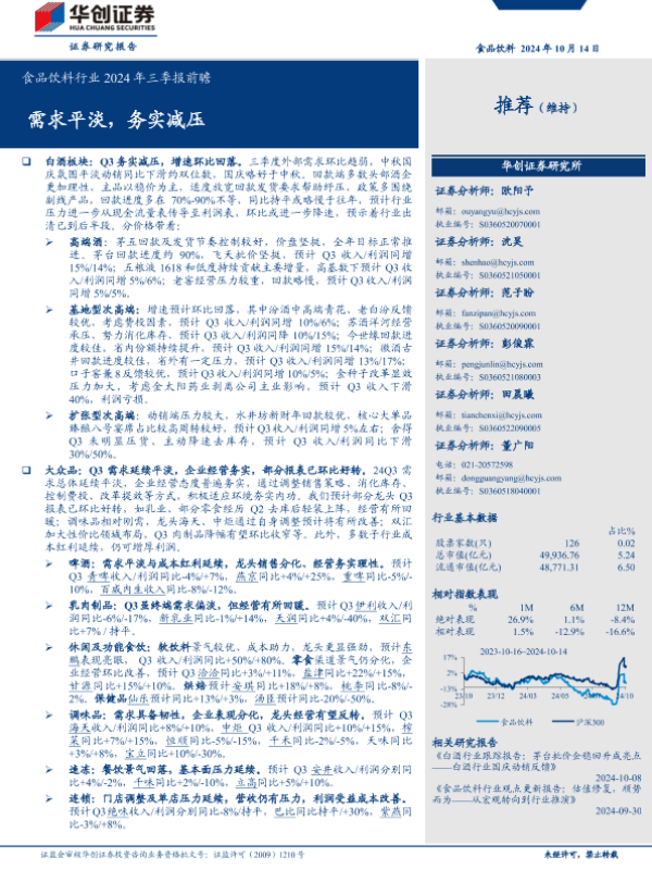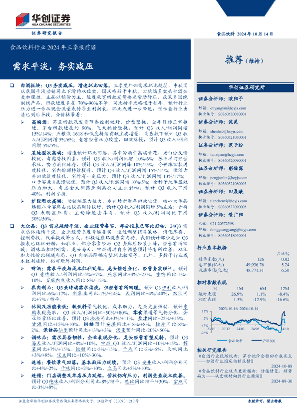 【华创证券】【20241014】食品饮料行业2024年三季报前瞻需求平淡,务实减压-19页