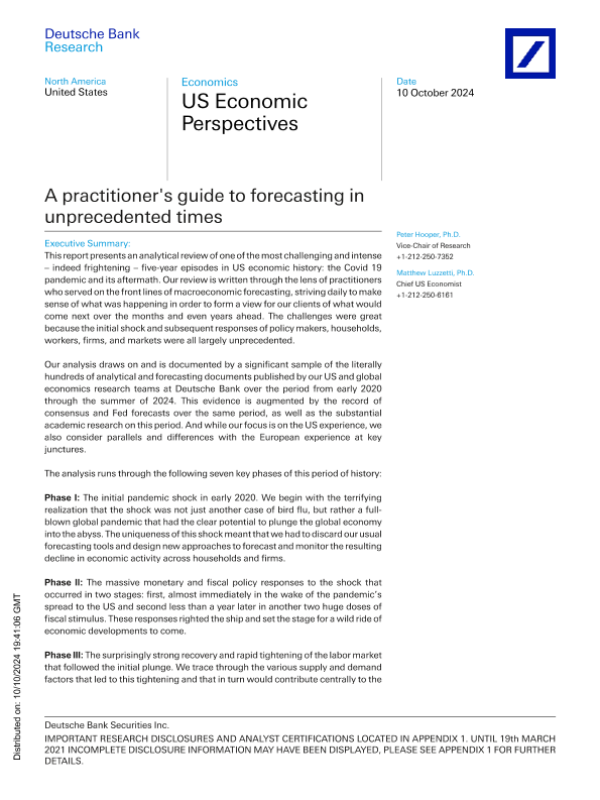 【Deutsche Bank Research】【20241010】US Economic Perspectives A practitioner's guide to forecasting in unprecedented times-66页