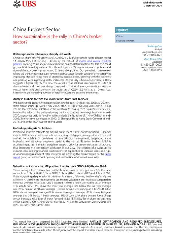 【UBS Securities Asia Limited】【20241007】中国券商板块的反弹是否可持续-14页