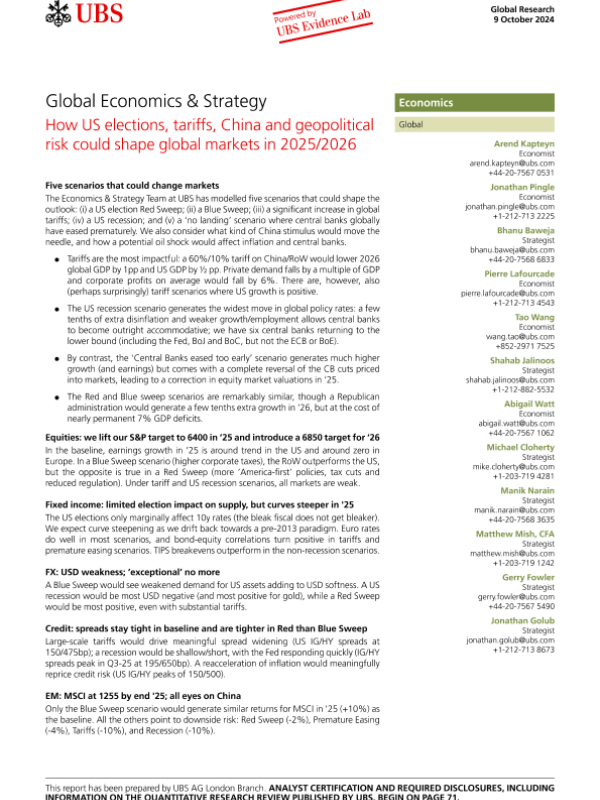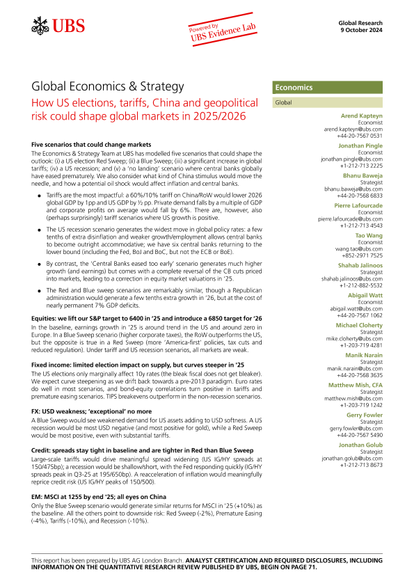 【UBS】【20241009】全球经济学与策略_美国选举、关税、中国及地缘政治风险如何塑造2025/2026年全球市场-74页