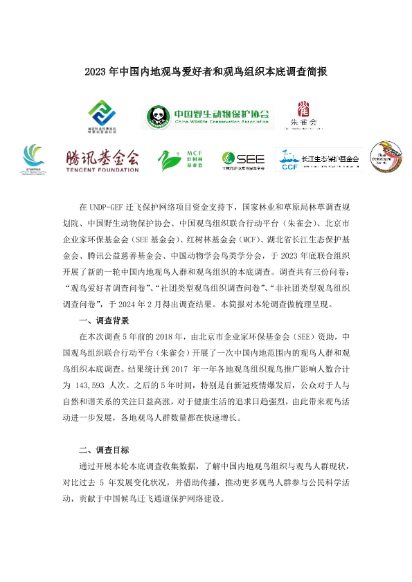 【国家林业和草原局林草调查规划院】【202402】2023年中国内地观鸟爱好者和观鸟组织本底调查报告-10页