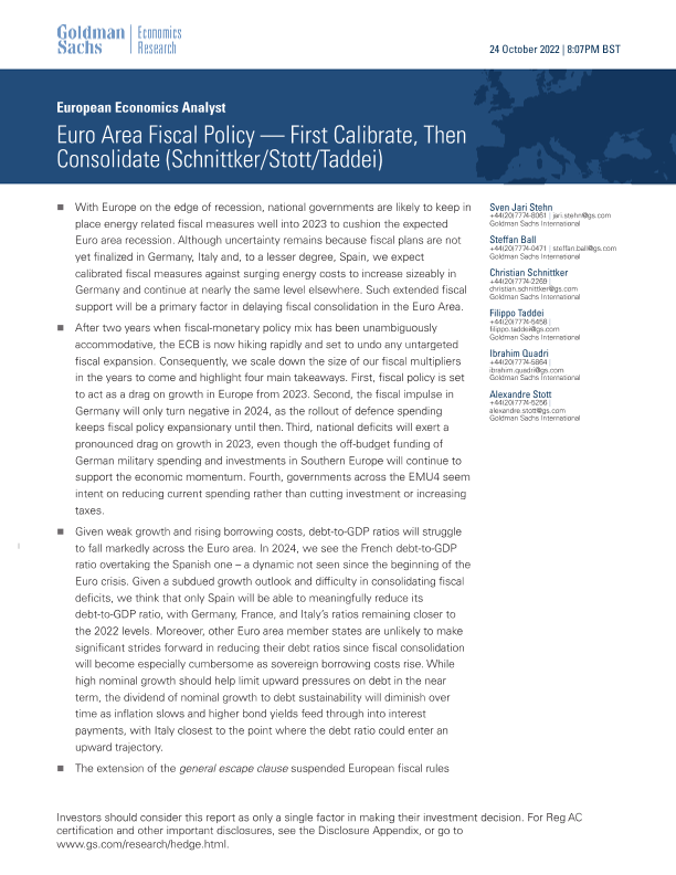 【Goldman Sachs】【20221024】Euro Area Fiscal Policy — First Calibrate, Then Consolidate-12页