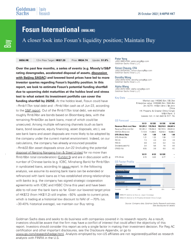 【Goldman Sachs】【20221025】A closer look into Fosun's liquidity position; Maintain Buy-18页