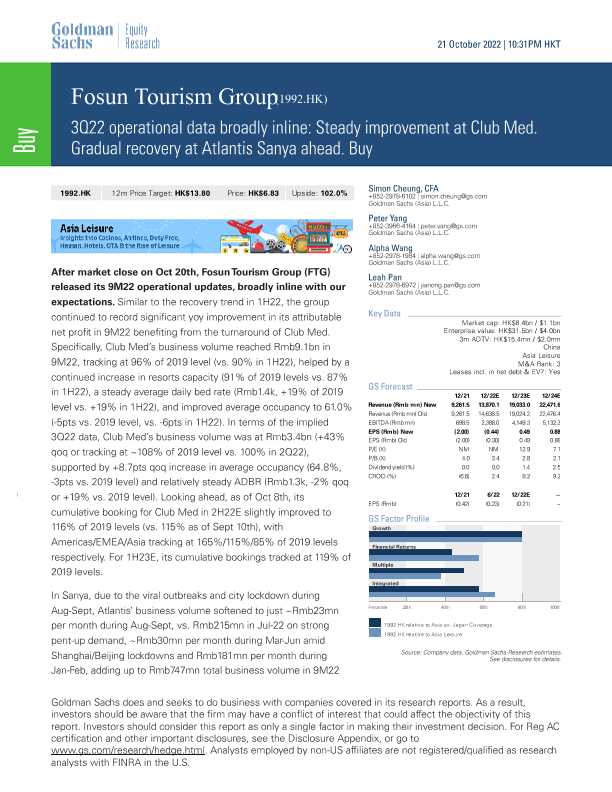 【Goldman Sachs】【20221021】Fosun Tourism Group Operational Update and Analysis-8页